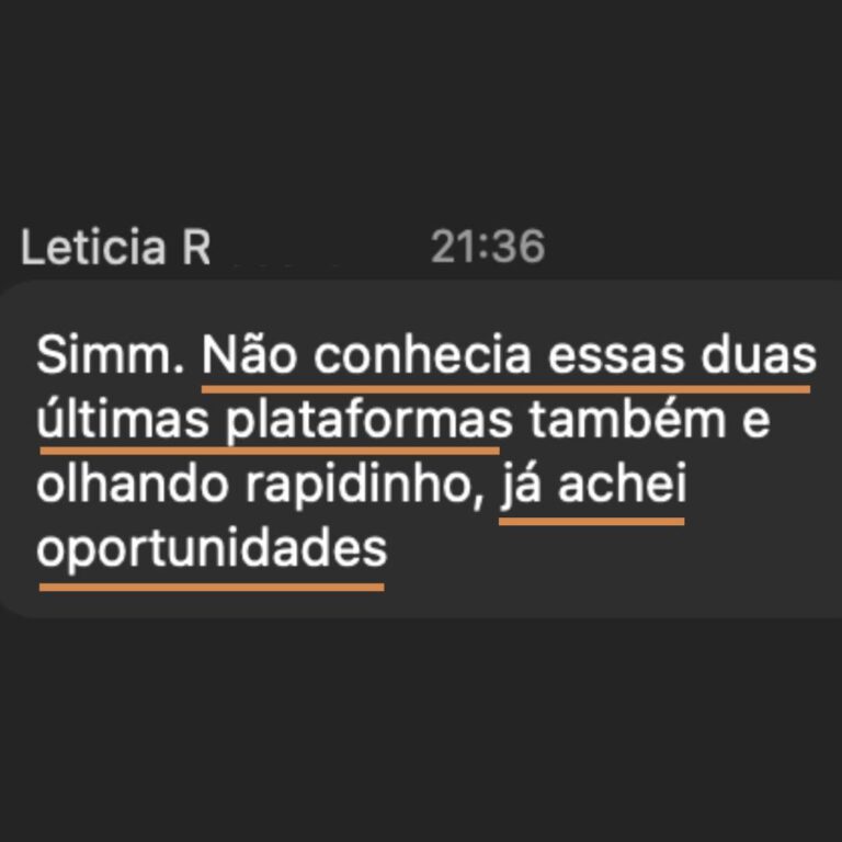 “Não conhecia essas duas últimas plataformas e olhando rapidinho já achei oportunidades” (remotas)